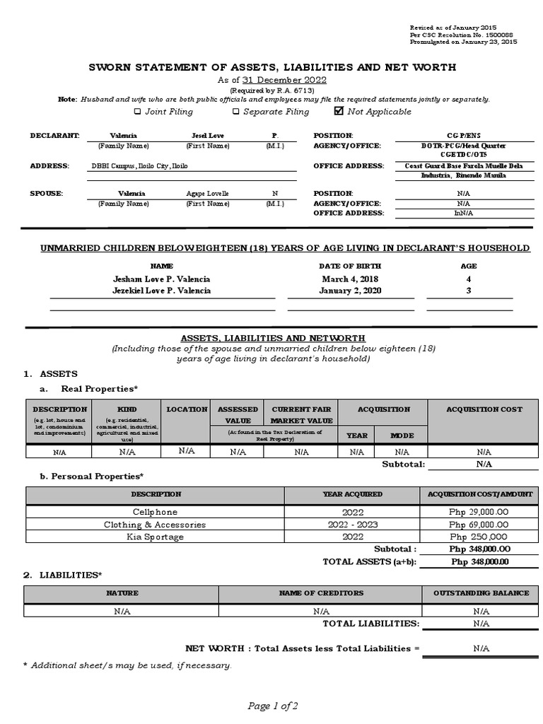 Statement of Accounts Liabilities and Net Worth (SALN) Free Soft copy , It is a declaration of assets (i.e., land, vehicles, etc) and liabilitie.